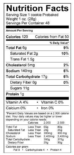 NGREDIENTS: flour (wheat flour, malted barley flour), Sugar, margarine (liquid soybean oil and partially hydrogenate soybean oil, water, salt, whey, soy lecithin, sodium benzoate and citric acid as preservatives, vegetable mono and diglycerides, artificial flavor, colored with beta carotene, vitamin A palmitate), cinnamon flavored chips (sugar, partially hydrogenated palm kernel oil, reduced mineral whey powder, natural flavor, nonfat dry milk solids, dextrose, soya lecithin (emulsifier), salt, artificial flavor, Yellow Lake #5, Yellow Lake #6, Blue Lake #2), Eggs, Water, Salt, Baking Soda (sodium bicarbonate), Natural Vanilla Flavor.